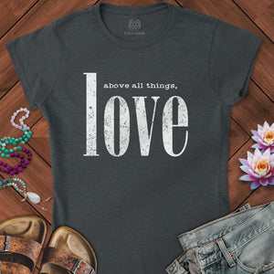 The Above All Things Fitted Tee features a timeless typewriter-style quote above a bold, distressed serif “love,” reminding us to prioritize kindness, connection, and compassion in everything we do. With its clean design and vintage feel, this shirt is an everyday mantra, styled with intention.