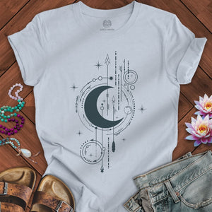 Arrow Moon Graphic Tee – Crescent Moon and Geometric Arrows Spiritual Shirt for Cosmic Energy Alignment – Lotus Moon