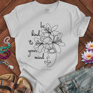 Be Kind to Your Mind Graphic Tee – Mental Health Awareness Shirt with Floral Line Art – Lotus Moon