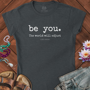 Featuring a classic typewriter font, this tee displays the powerful message: "Be you. The world will adjust." It’s a reminder that authenticity is your superpower—and you don’t need to shrink to fit into anyone else’s expectations. Whether you're on a self-love journey or just done with pretending, this tee is your go-to for unapologetic expression and radical self-acceptance.