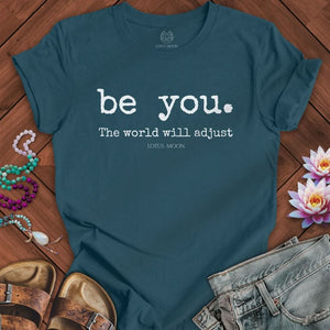 Featuring a classic typewriter font, this tee displays the powerful message: "Be you. The world will adjust." It’s a reminder that authenticity is your superpower—and you don’t need to shrink to fit into anyone else’s expectations. Whether you're on a self-love journey or just done with pretending, this tee is your go-to for unapologetic expression and radical self-acceptance.