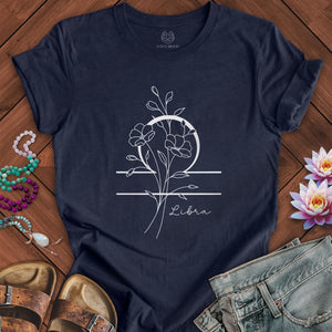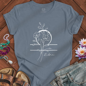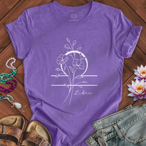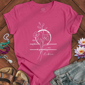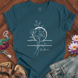 Boho Libra Zodiac Tee – Floral Astrology Graphic Shirt for Harmonizing Hearts – Lotus Moon