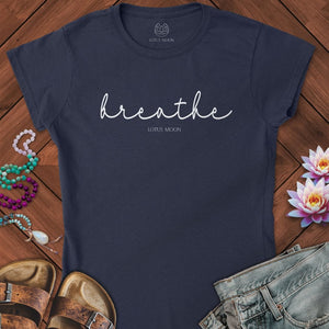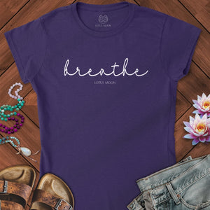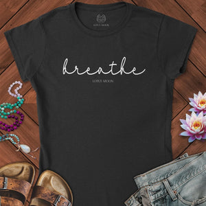 The Breathe Fitted Tee features the word “breathe” in elegant script, centered gently across the chest—a soft but steady nudge to pause, inhale, and return to the present. This design is perfect for yogis, meditators, and mindful souls who appreciate the beauty of minimalism and the strength in stillness.