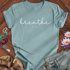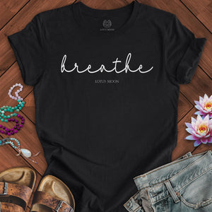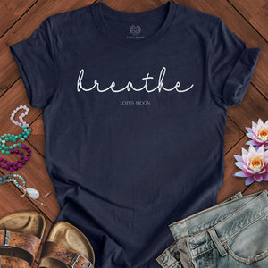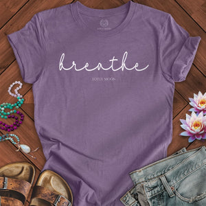 Breathe Script Tee – Mindful Minimalist T-Shirt for Calm and Clarity – Lotus Moon