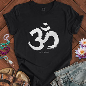 Brushstroke Om Symbol T-Shirt – Minimalist Spiritual Tee for Yoga, Meditation & Mindfulness – Lotus Moon