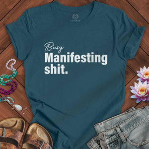 Busy Manifesting Shit Tee – Manifestation Graphic Shirt for High-Vibe, Goal-Getting Souls – Lotus Moon