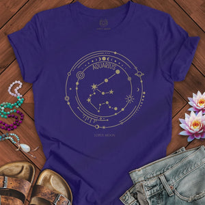 Aquarius Constellation Shirt – Celestial Zodiac Tee with Moon Phases and Golden Star Map – Lotus Moon