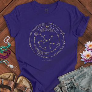 The Constellation Sagittarius Tee honors the bold, expansive spirit of the Archer. This celestial design maps the Sagittarius constellation in radiant gold, encircled by planetary symbols, moon phases, and stardust. A wearable symbol of freedom, wisdom, and wild curiosity, this tee is for the dreamers who chase truth and adventure under cosmic skies.