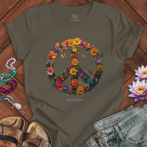 Flower Peace Sign T-Shirt – Colorful Boho Hippie Graphic Tee – Lotus Moon