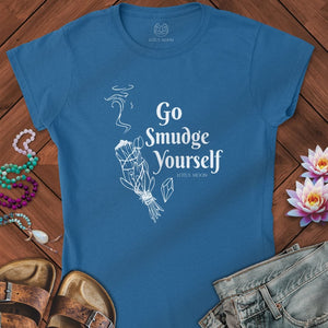 The Go Smudge Yourself Fitted Tee blends spiritual intention with cheeky humor through its hand-drawn smudge stick and crystal artwork, accompanied by a playful reminder to refresh your vibes. Whether you're warding off negativity or just want a good laugh, this tee is the perfect companion for lightworkers, energy healers, and crystal lovers alike.