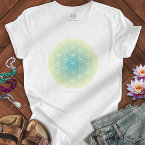 Sacred Geometry Green Flower of Life Tee – Spiritual Symbol Shirt – Lotus Moon