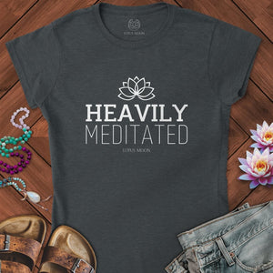 This clever design blends mindful vibes with a tongue-in-cheek twist, pairing a bold “Heavily” with a delicate “Meditated” underneath—crowned with a simple lotus symbol to seal the spiritual sass. Whether you're coming out of savasana or just trying to keep your chill in line at the grocery store, this shirt lets the world know: you're deeply relaxed… and maybe just a little cheeky.