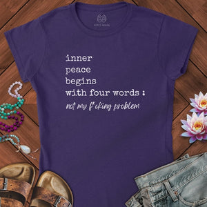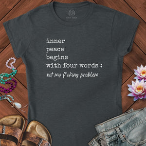 The Inner Peace Fitted Tee is for the woman who’s done people-pleasing and now protects her peace like sacred ground. With a mix of vintage typewriter and handwritten script, this unapologetic design delivers a snarky spiritual truth bomb: “not my f*cking problem.”