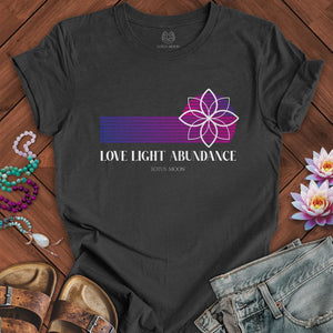 Love Light Abundance Graphic Tee – Retro Lotus Shirt with Spiritual Message in Cool Tones – Lotus Moon