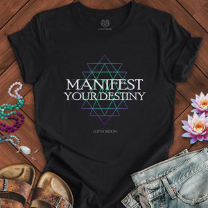 Manifest Your Destiny T-Shirt – Sri Yantra Sacred Geometry Tee for Spiritual Empowerment – Lotus Moon
