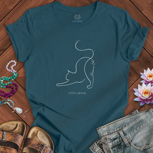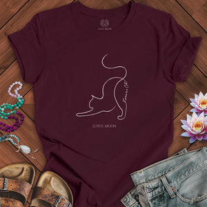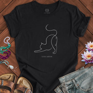 Minimalist Karma Cat Stretch Tee – “Karma is a Cat” Line Art Shirt – Lotus Moon