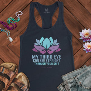 For those who walk the mindful path—but don’t miss a thing—our My Third Eye Tank is your new go-to. Featuring a bold and beautiful multicolor lotus front and center, this racerback-style tank top delivers the ultimate vibe check with the line: “My third eye can see straight through your shit.” It’s cheeky, it’s powerful, and it’s made for those who see beyond the surface.