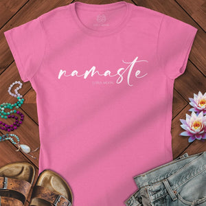 Featuring the word "namaste" in graceful white or black script across the chest, this design is elegant, grounded, and full of heart. Whether you're on your way to the mat, journaling at sunrise, or just flowing through your day, this tee serves as a soft reminder to honor the light within.