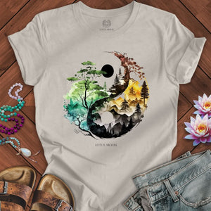 Nature Yin Yang T-Shirt – Mountain and Forest Balance Tee for Outdoor Souls – Lotus Moon