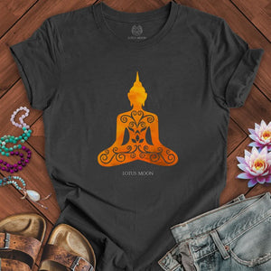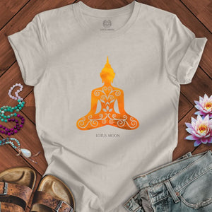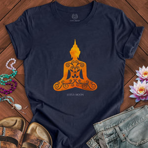Ornate Buddha Meditation Tee – Golden Spiritual Graphic Shirt for Mindful Living – Lotus Moon
