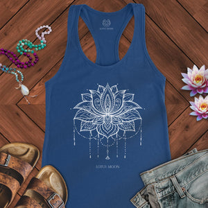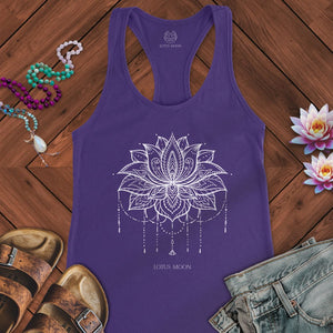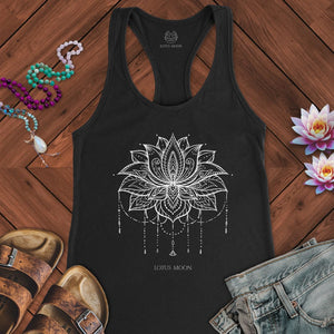 Ornate Lotus Flower Racerback Tank – Intricate Boho Mandala Design with Spiritual Vibes – Lotus Moon