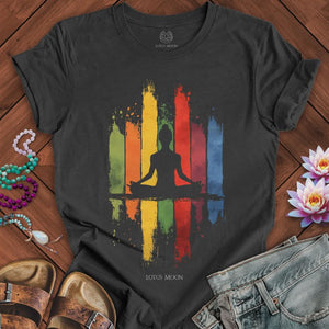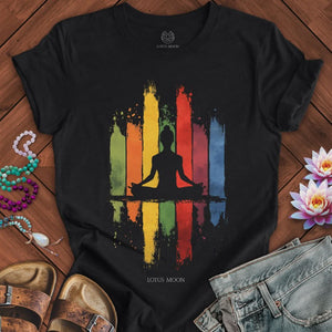 Paint Stripe Meditation T-Shirt – Vibrant Mindfulness & Yogi Silhouette Tee – Lotus Moon