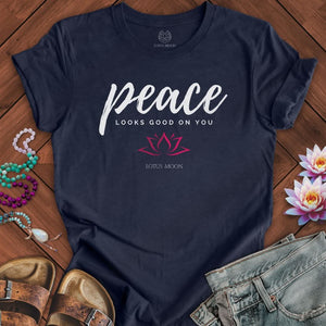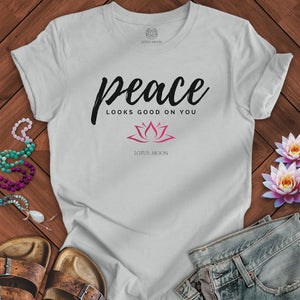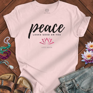 Peace Looks Good on You T-Shirt – Inspirational Lotus Flower Yoga Tee – Lotus Moon