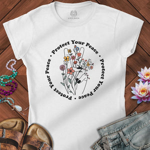 The Protect Your Peace Fitted Tee features a graceful hand forming a peace sign, wrapped in wildflowers and encircled by the mantra Protect Your Peace. This design is a gentle yet powerful reminder to honor your energy, stay rooted in your truth, and let your boundaries blossom with love. Soft, soulful, and perfect for mindful hearts.