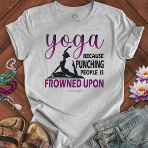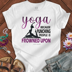 Funny Yoga Tee – “Punching Is Frowned Upon” Shirt for Yoga Lovers with Sass – Lotus Moon