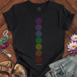 Chakra Alignment Graphic Tee – Colorful Spiritual Shirt with Radiant Energy Centers – Lotus Moon