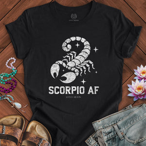 Scorpio AF Graphic Tee – Edgy Zodiac Scorpion Shirt for Bold, Intense Astrology Lovers – Lotus Moon