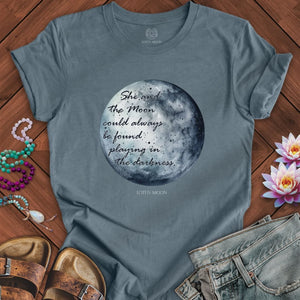 Channel your inner lunar goddess with the She and the Moon Tee, a tribute to the strength, mystery, and magic found in the darkness. This captivating design features a textured full moon in cosmic grays and silvers, with script lettering that reads: "She and the Moon could always be found playing in the darkness." It's a poetic reminder that light isn’t the only place to shine—sometimes, the soul grows strongest in the shadows. Whether you're a midnight meditator, a celestial dreamer, or simply navigating life with intuition and grace, this tee wraps you in that moonlit energy of resilience and beauty.