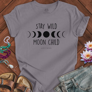 Stay Wild Moon Child Tee – Phases of the Moon Graphic Shirt for Free Spirits – Lotus Moon