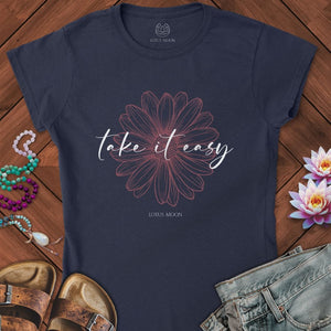 Featuring a delicately hand-drawn pink flower radiating peaceful vibes, this design is centered with flowing script that whispers “take it easy.” It’s a wearable mantra for mindful living, perfect for yoga, self-care days, or simply adding softness to your everyday style.