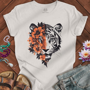 Tigress Floral Graphic Tee – Fierce Tiger Face Shirt with Wildflower Design – Lotus Moon