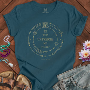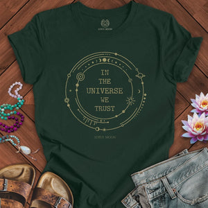 In The Universe We Trust T-Shirt – Cosmic Solar System Graphic Tee for Spiritual Seekers – Lotus Moon