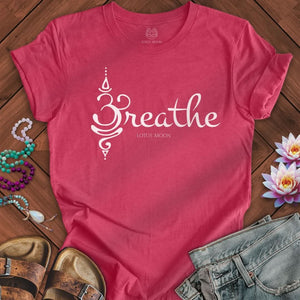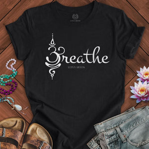 This unique shirt showcases the word "breathe" in graceful script across the chest, with the letter 'B' artistically transformed into the Unalome symbol—a representation of life's journey toward enlightenment. The Unalome's spirals and straight lines depict the path from life's challenges to ultimate clarity and peace.