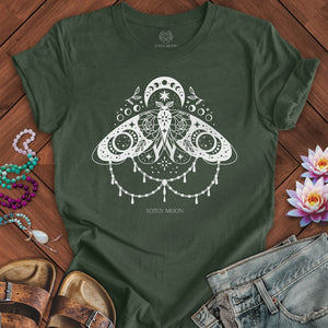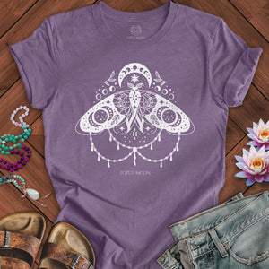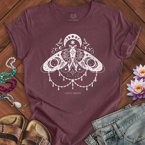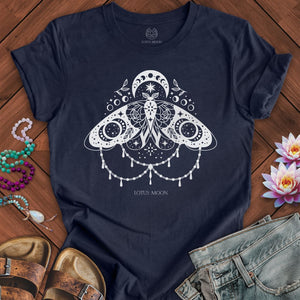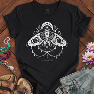 White Lunar Moth Tee – Mystical Moth T-Shirt with Moon Phases & Sacred Symbols – Lotus Moon