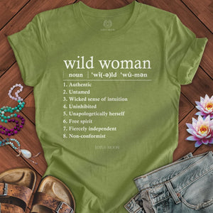 Empowered Wild Woman Definition T-Shirt – Feminist, Free Spirit, Bold Identity Tee – Lotus Moon