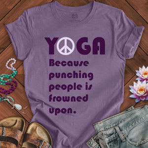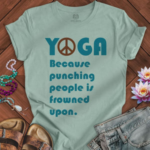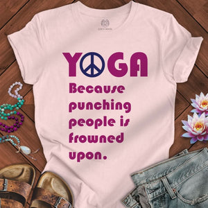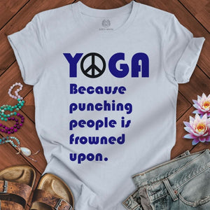 Funny Yoga Peace Sign Tee – "Yoga Because Punching People Is Frowned Upon" Shirt – Lotus Moon