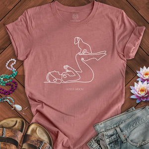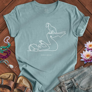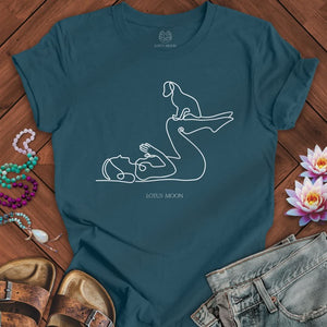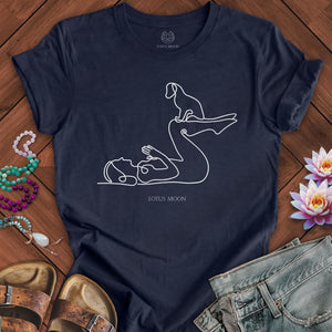 The minimalist line art captures the strong bond between a person and their dog. It’s a perfect choice for animal lovers who embrace mindfulness and movement. Wear it to spread happiness and calm wherever you go!