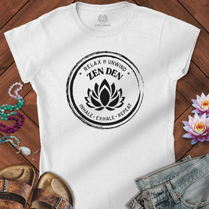 The Zen Den Fitted Tee brings a lighthearted twist to your spiritual wardrobe.